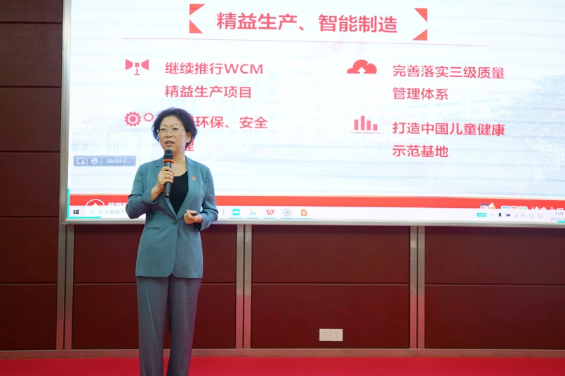 刘景萍董事长引用席大大总书记在2022年博鳌亚洲论坛上的重要讲话勉励全体与会人员,在海南自贸港建设的机遇期,认真学习贯彻落实省第八次党代会精神,坚持党建引领企业发展,将和记官网药业集团打造成中国儿童健康领军企业。