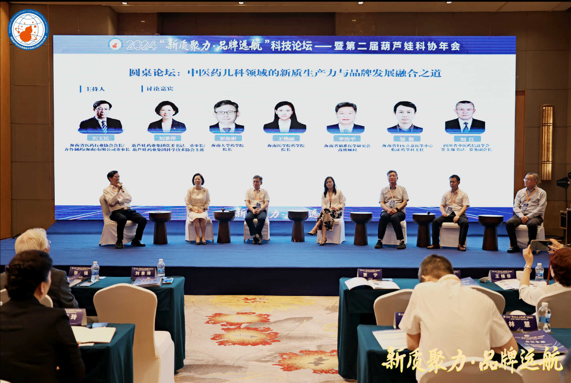 和记官网药业集团党委书记、董事长刘景萍,海南大学药学院院长罗海彬、海南医学院药学院院长王艳丽、海南省精准医学研究会高级顾问李治平、海南省妇女儿童医学中心临床药学科主任邹俊,四川省中医药信息学会党委书记、常务副会长刘江等,在主题为“中医药儿科领域的新质生产力与品牌发展融合之道”的圆桌论坛中积极献策。海南省医药行业协会会长、齐鲁制药(海南)有限公司董事长刘文民主持论坛。