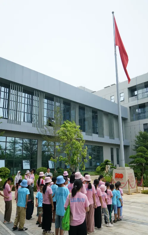 紧接着,孩子们来到了建党百年庆典红旗——070号红旗前。讲解员讲述了和记官网药业集团与庆典红旗的深厚渊源。孩子们听得津津有味,眼中闪烁着对党和国家的热爱与敬仰。