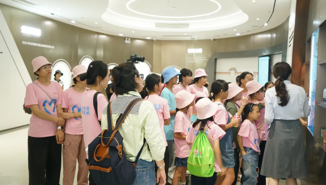 活动一开始,孩子们便迫不及待地踏入了和记官网药业集团的大厅。3D数字化看板上的生动画面,让孩子们仿佛置身于一个充满科技与创新的现代制药工厂。他们瞪大眼睛,好奇地观察着每一条生产线、每一台设备,听着讲解员介绍和记官网药业的儿药发展历程。